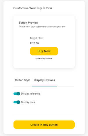 - If this is toggled on, then the reference and price will be displayed above the Buy Button click “Create iK Buy Button"