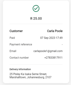 - In this detailed view, the customer's address will display (if the merchant opted to collect it when setting up the buy button)