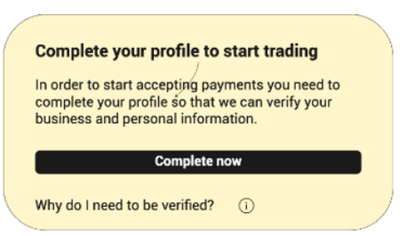 If you see this banner, then please click on ‘Complete now’ to complete your profile and start trading