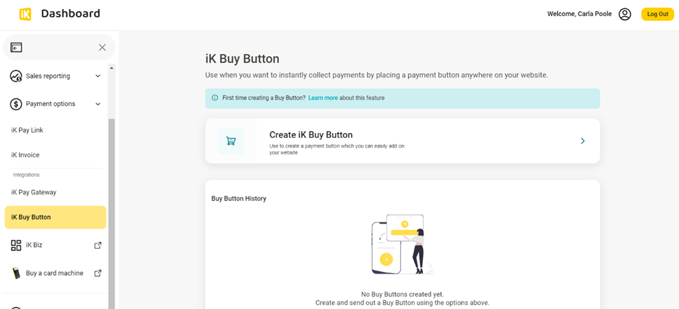 - On the iK Buy Button landing page, select "Create iK Buy Button"