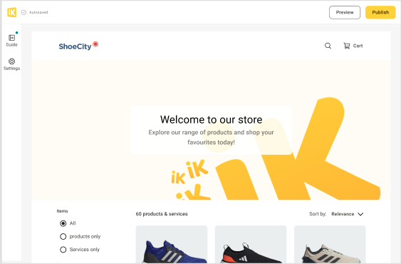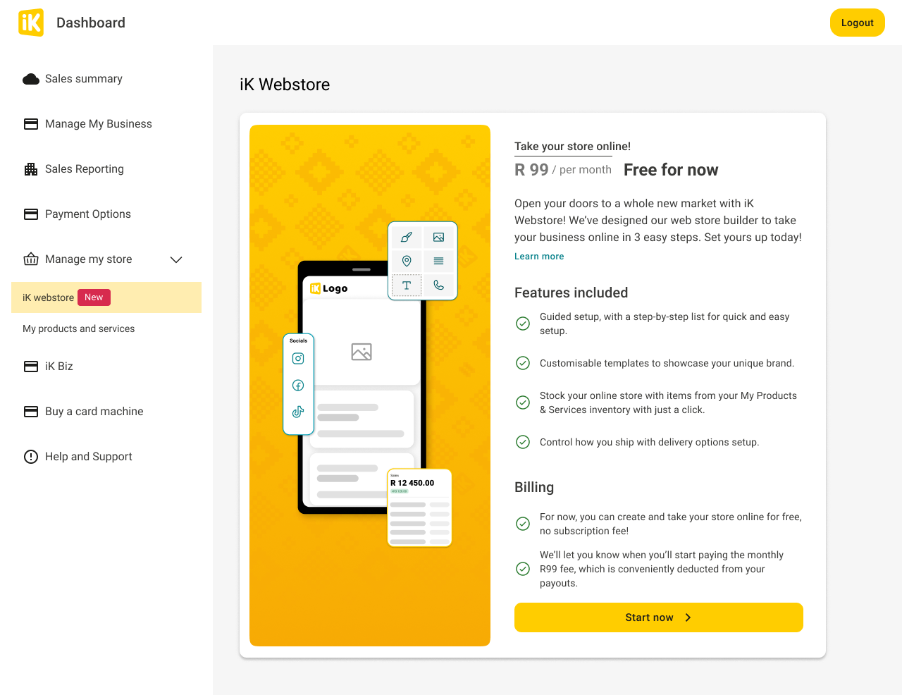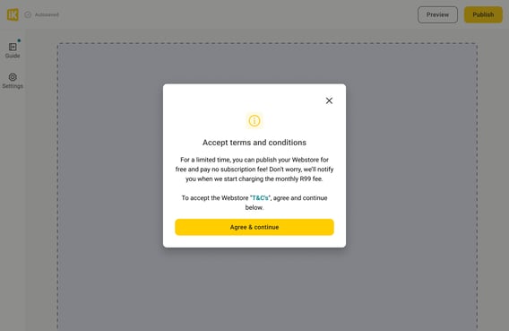 Click through the preview of your iK webstore and when you are happy, accept the Terms & Conditions in order to publish your webstore and start selling! It's that easy!