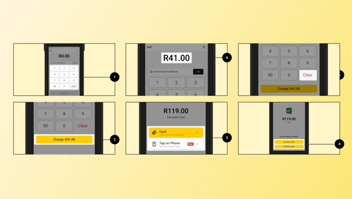 - The amount is displayed above the keypad