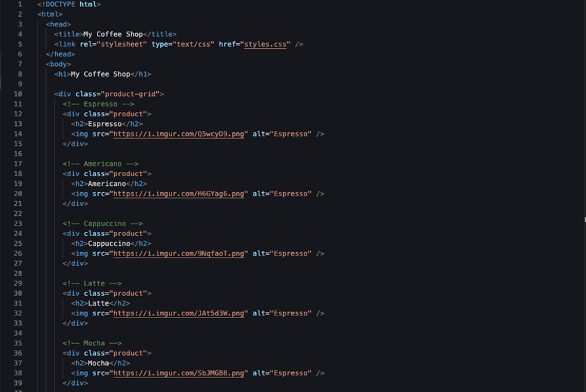 - Find the product labelled “Cappuccino” in the website’s source code.
