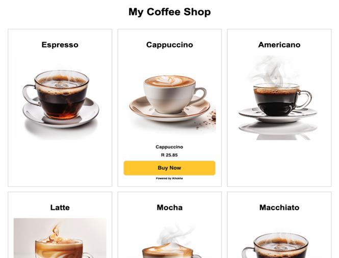 - Review your website to confirm that the Buy Button is displayed according to your customisation for the "Cappuccino" product.
