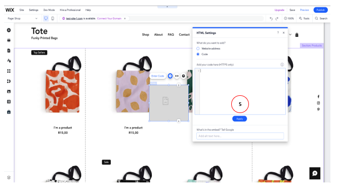 - Paste the code into the text box and click ‘Apply’. A live preview of the Buy Button will display.