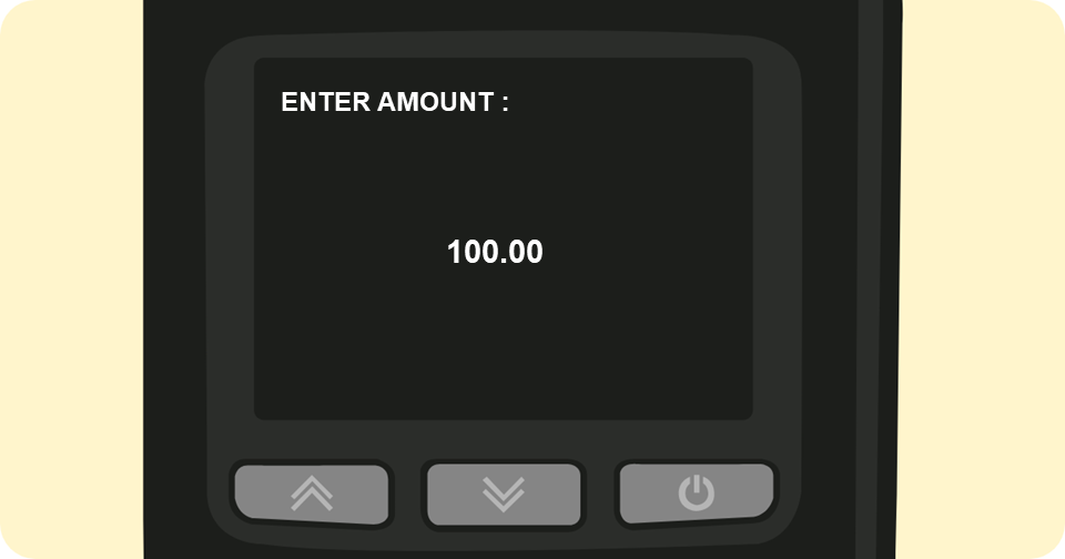 Step 2: Use the numeric keypad to enter the transaction amount e.g. R100.00 then press the green "enter" button to proceed.